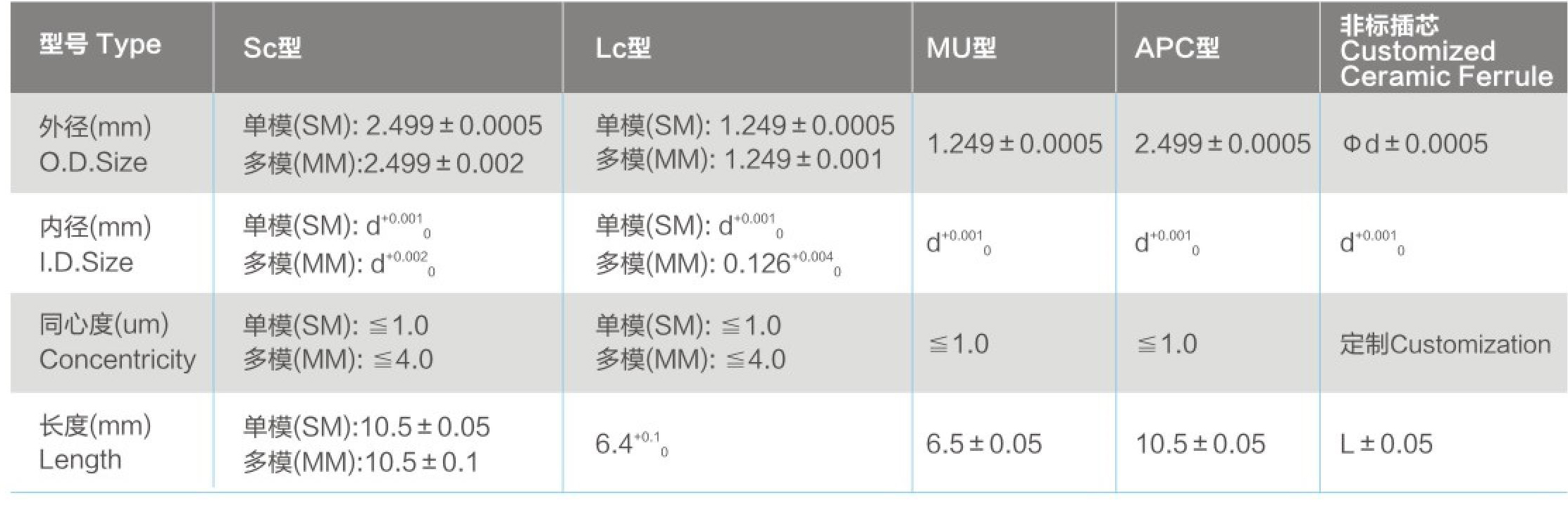 各種規(guī)格插芯、多種插芯端面形式